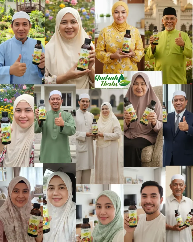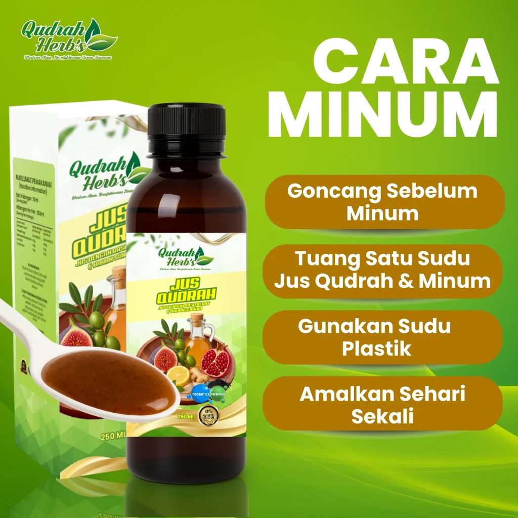 Jus Qudrah diformulasi hasil gabungan bahan sunnah yang telah dikaji di peringkat antarabangsa, ditambah pula dengan proses R&D yang teliti bagi memastikan kualiti dan keberkesanan terbaik. Setiap botol dihasilkan mengikut piawaian keselamatan dan kebersihan, supaya anda boleh amalkan dengan penuh yakin.
