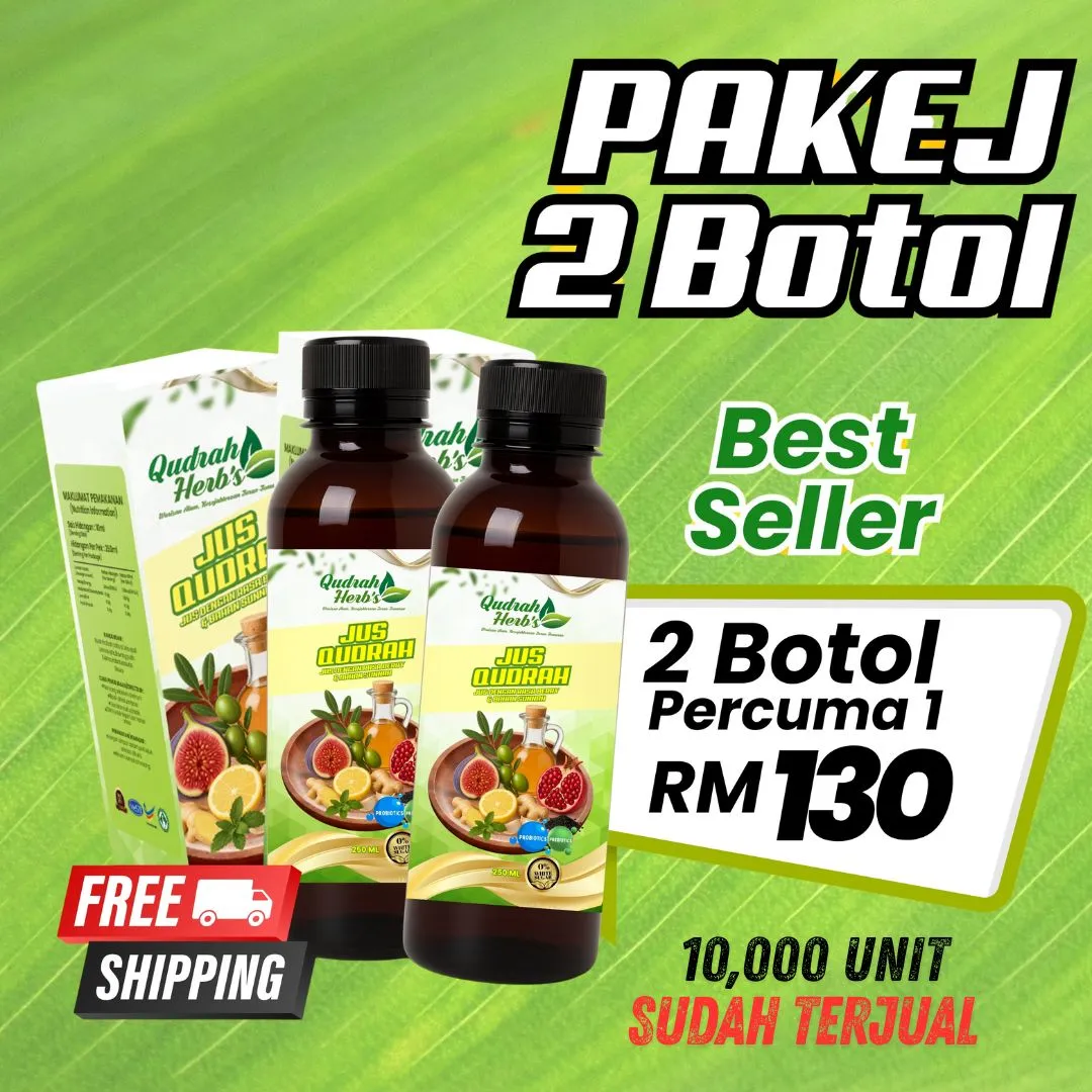 Sebotol Jus Qudrah mengandungi 250ml untuk bekalan 10-15 hari.