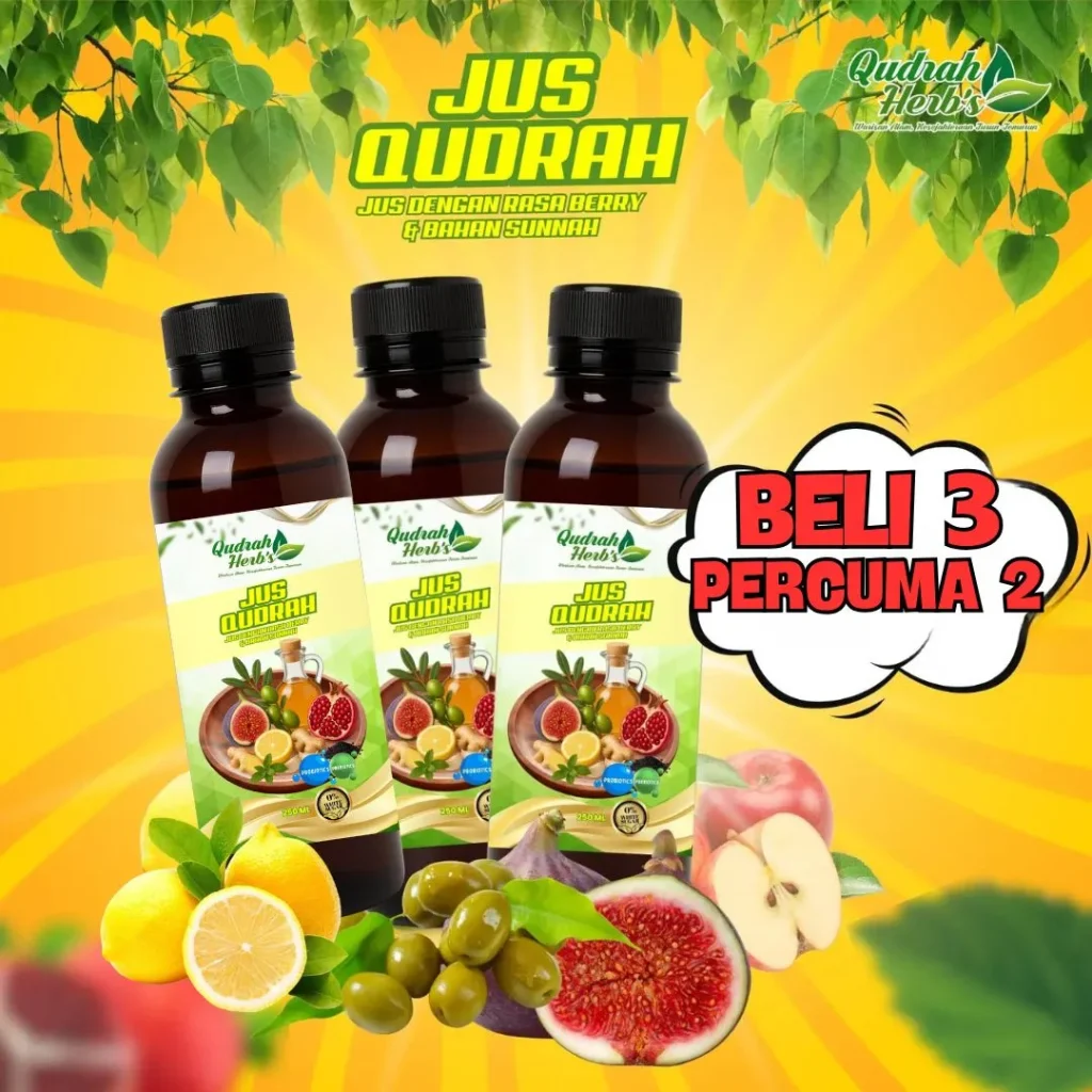 Jus Qudrah memberikan pelbagai manfaat kesihatan seperti membantu mengawal tekanan darah & gula, menyokong kesihatan jantung, serta membekalkan nutrien semula jadi dari buah tin, zaitun, delima dan habbatus sauda. Diperkaya dengan rasa berry yang menyegarkan, ia bukan sahaja berkhasiat malah sedap diminum setiap hari.